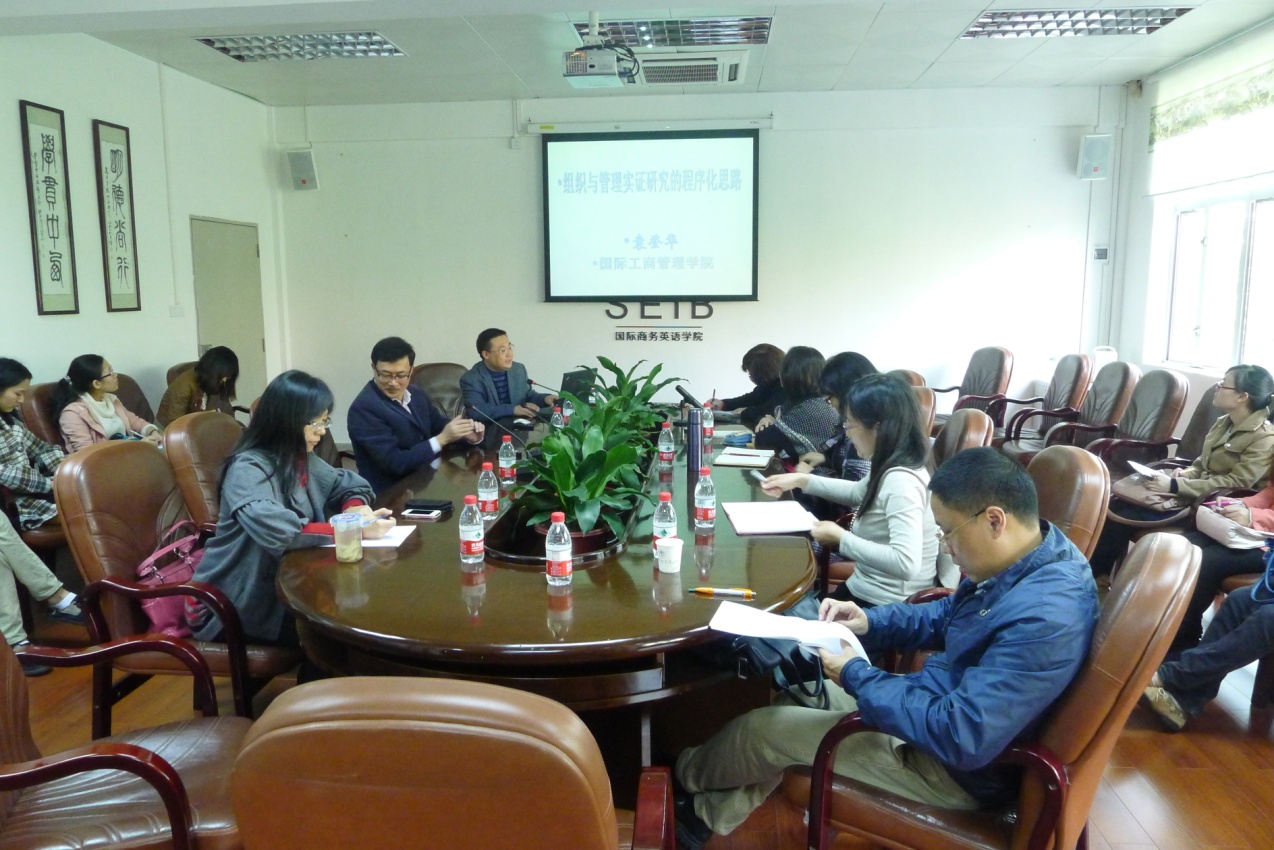 20121213周四下午,国际商务研究中心特邀我校工商管理学院的袁登华教授,给研究中心的成员以及商英研究生做了一场题为《组织与管理实证研究的程序化思路》的讲座。
