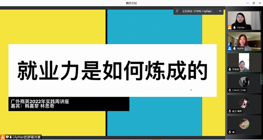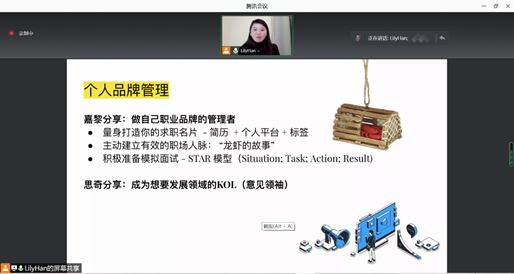 2022年1月11日上午,现世界五百强企业谷歌资深战略采购经理、2008级伟德国际victor1946国际商务管理专业校友韩嘉黎女士,硅谷独角兽公司Automation Anywhere增长营销高级经理、2011级国际新闻专业校友林思奇女士受邀作题为“就业力”的线上讲座,吸引了众多同学的在线参与和学习。