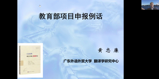 1月22日14点30分,国际商务英语学院通过腾讯会议举办高层次项目申报指导会,伟德国际victor1946翻译学研究中心黄忠廉教授应邀作高层次项目申报指导。本次指导会由国际商务英语学院副院长胡春雨教授主持,来自国际商务英语学院的刘平教授、乐思伟教授、石静副教授、郝佳副教授等多名教师出席了本次会议。