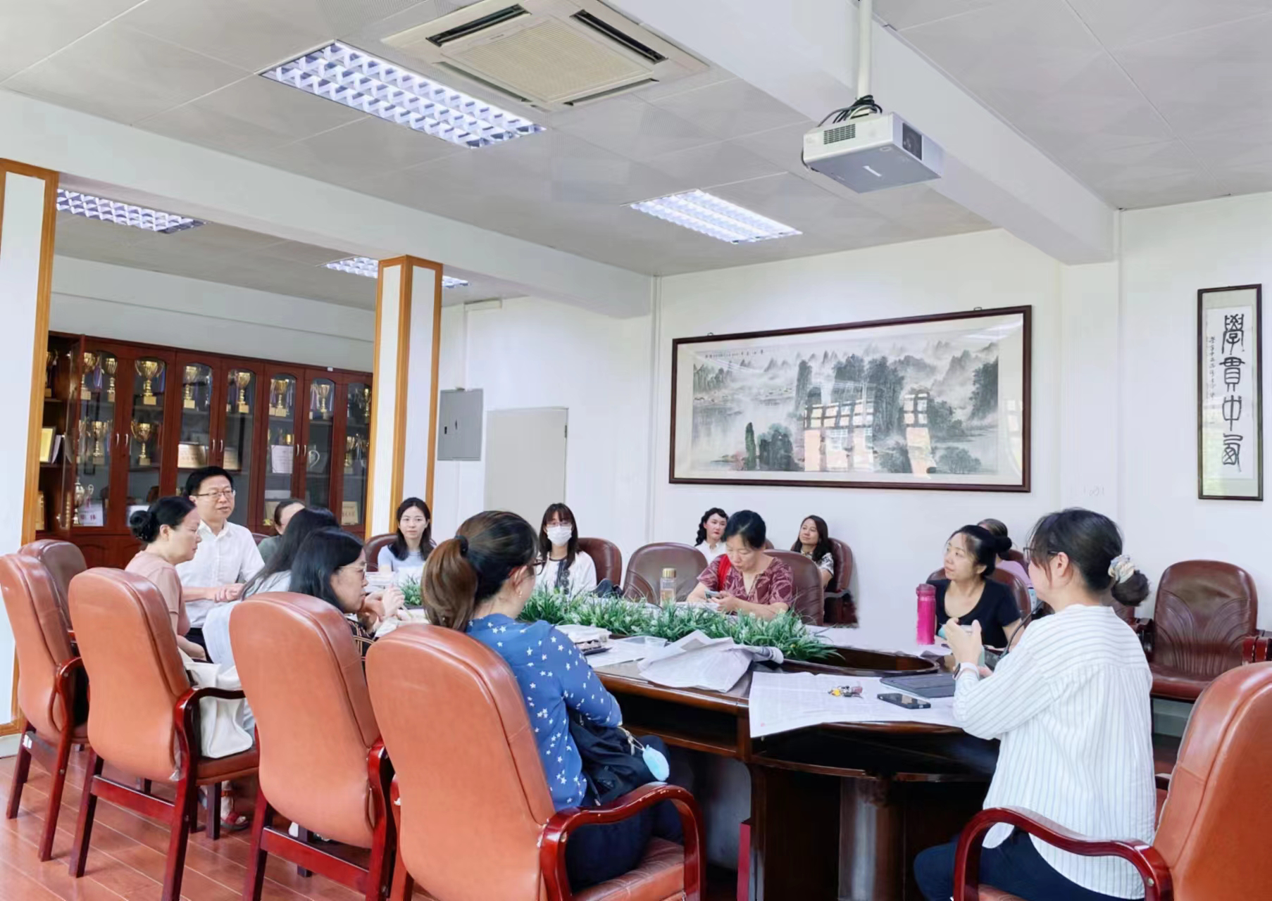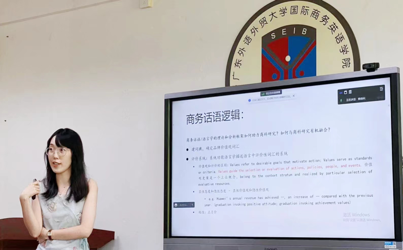 为推进学习贯彻习近平新时代中国特色社会主义思想主题教育走深走实,推动国际商务英语学院的科研发展,加强院内跨学科研究的交流,商英午间学术沙龙活动如期而至。2023年9月21日中午,本学期第一次商英午间学术沙龙在三教318进行。本次沙龙由国际商务管理与出海企业研究团队组长郝佳老师和商务话语研究团队的何宇菲老师带来分享。学院院长胡春雨、副院长刘平、副院长杨文慧、副院长汪谓超以及20多位教师参加了活动。