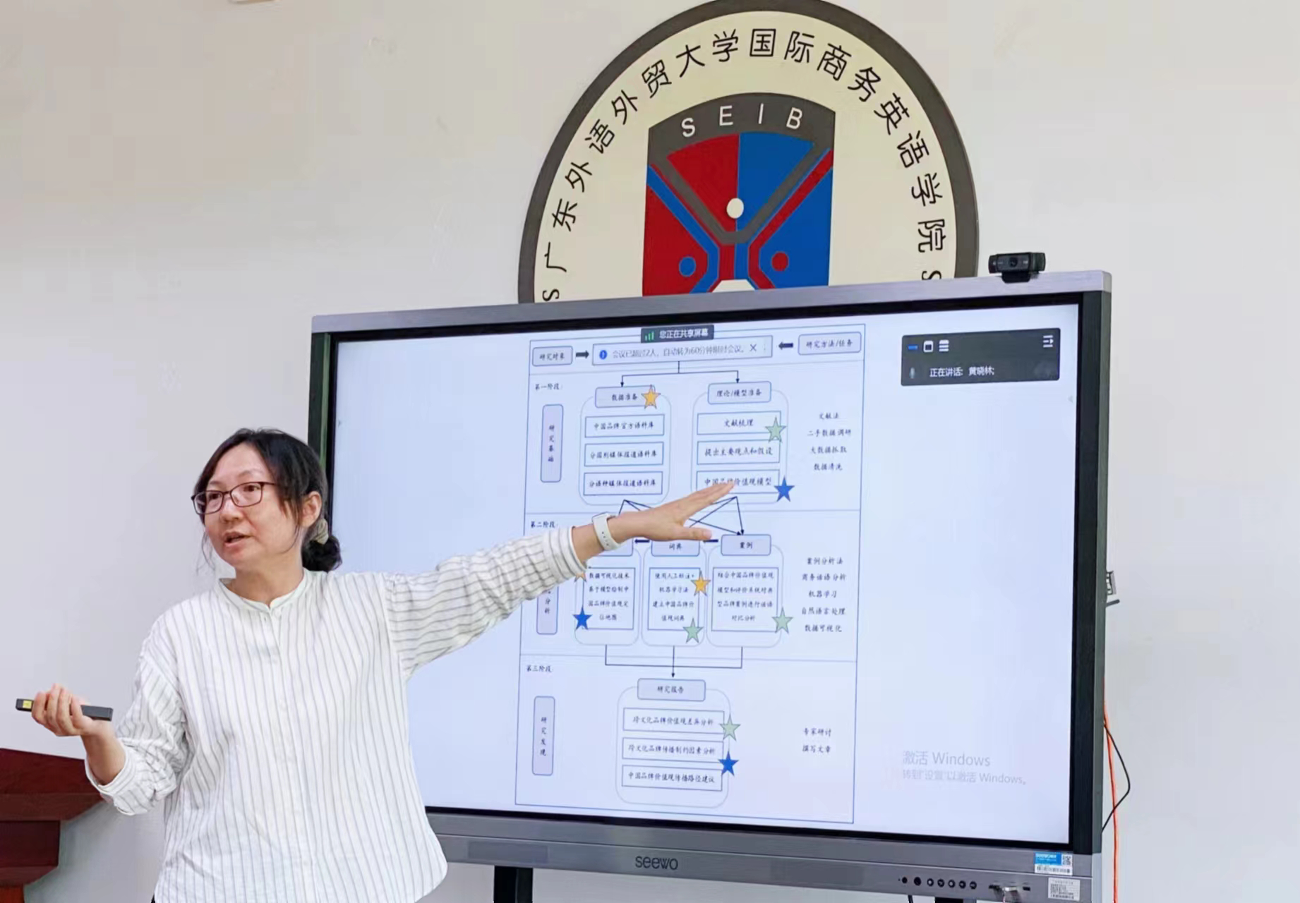 随后,郝佳和何宇菲老师分享了题为《营销传播+商务话语+大数据AI=?伟德国际victor1946跨学科研究路径探索》的报告,该报告以《中国品牌价值观在海外传播的制约因素与突破路径研究》为案例探讨了可以跨学科研究的路径和面临的问题,来自不同学科方向和研究团队的20多位教师踊跃提出了各自的意见和建议。