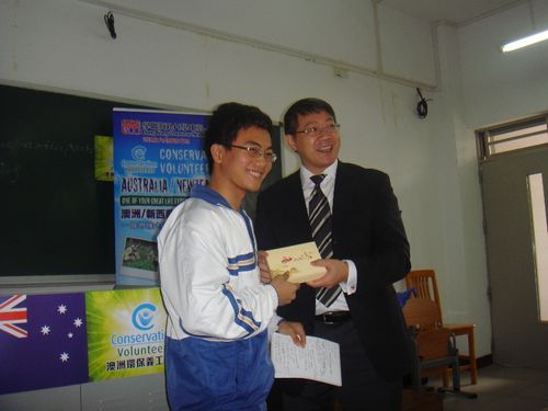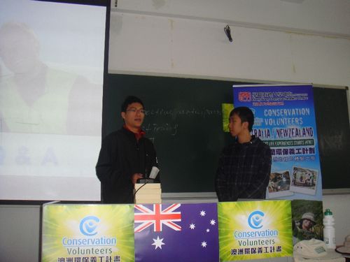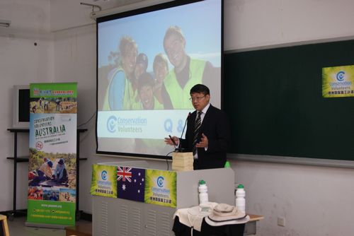 Jimmy Wong 首先对澳洲环保义工(Conservation Volunteer Australia, 简称CVA)项目做了简要的介绍,随后以此类环保项目为例,为同学们展示了CVA现有的营销策略如媒体营销、学校宣讲、企业赞助等。一系列的细致讲述使同学们对营销方式有了更深入的了解并产生了浓厚的兴趣。
