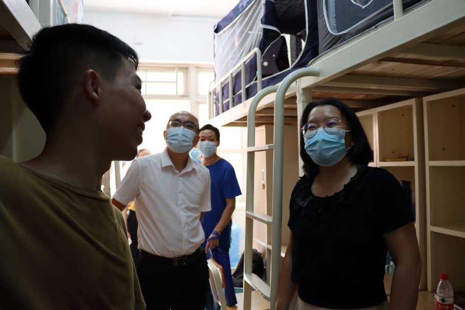 下午15时,院党委书记王秀民、院党委副书记陈静、辅导员魏煊、刘颖、庾点来到新生宿舍,对新生进行探访和问候;通过与新生及其家长交流学院学习生活等方面的内容,让新生逐步适应大学生活,让家长了解自己孩子的学习生活环境,助力新生顺利开启大学新生活;为新生带去学校和学院的关怀和温暖,努力做到“让学生住得舒心,让家长放心”。