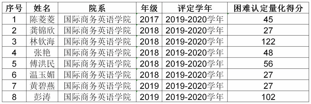 2019-2020学年度第二学期家庭经济困难学生认定名单公示