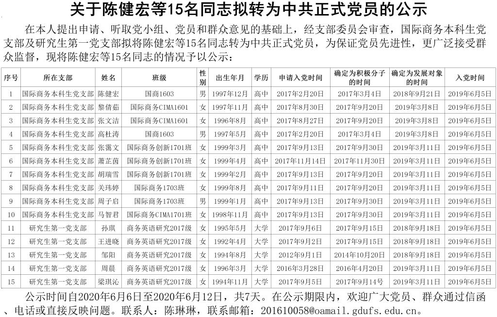 关于陈健宏等15名同志拟转为中共正式党员的公示