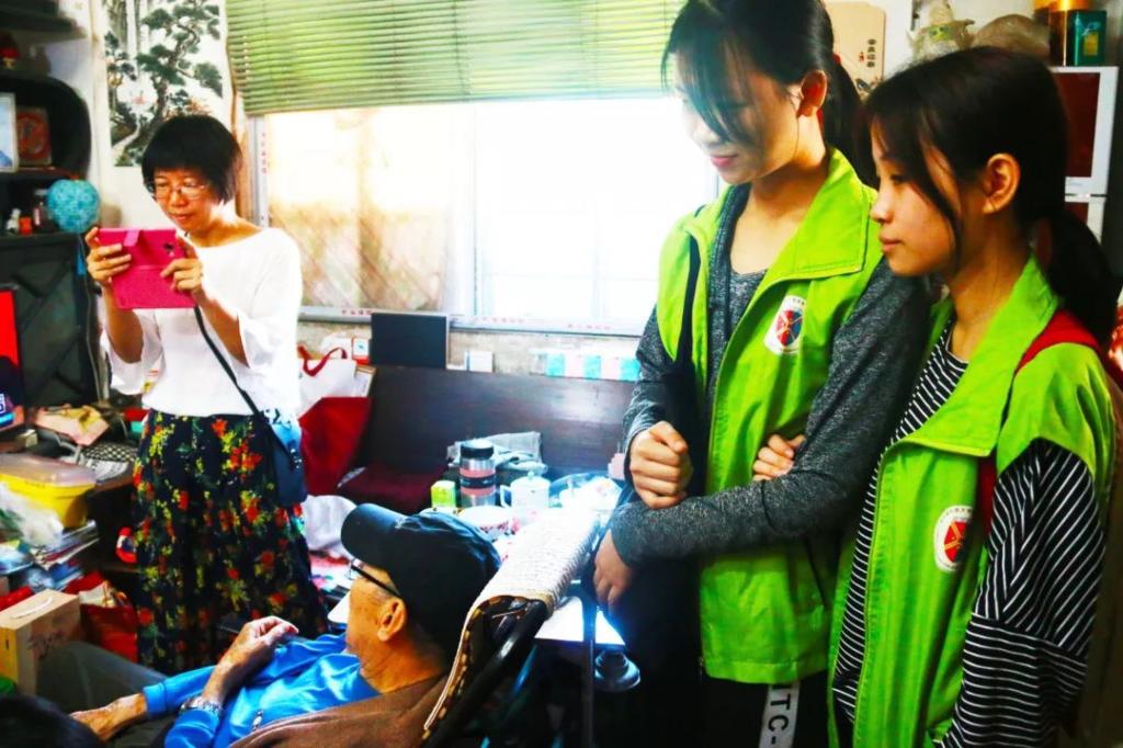 我们探望的第一位老人是殷婆婆,殷婆婆是一位独居老人,平时一个人住在一个小平房中,地方狭窄,腿脚不便,行动也十分缓慢。我们带去了志愿者做的美味饭菜,把满满的爱心装进饭盒中交给婆婆。婆婆也用粤语和志愿者们亲切交谈,还有三个才小学一年级的小朋友给婆婆唱起《两只老虎》,最后我们和婆婆拍了几张合影,留下彼此的美好回忆。