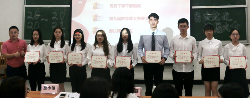 莫小俊对党建成员在过去一年对商英党建的辛勤付出给予充分肯定和赞赏,对新一届党建成员提出期望:希望大家爱党爱国,在党建中学到真本领,做“又红又专”的党建人;守得初心,耐住寂寞,不怕犯错,从错误中成长;要有党建记忆,态度真诚,做事用心,开拓创新,为党建工作再创新局面贡献力量。并为新任部长颁发聘书,为2019-2020学年党建优秀干事干部、第九届微党课大赛获奖队伍颁奖。陈幸儒对2019-2020学年商英党建的工作做了全面总结。