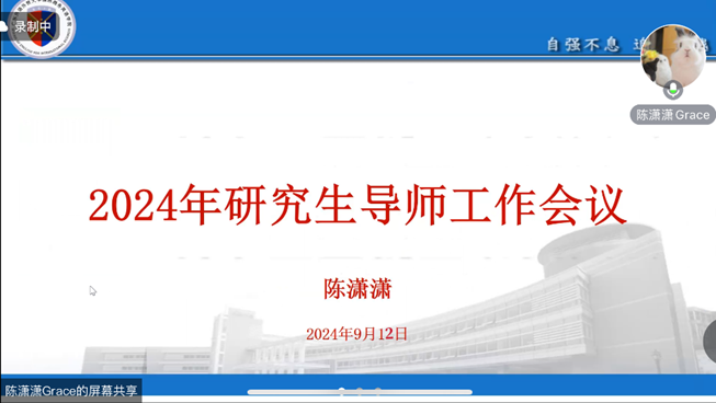 2024年9月12日16时30分,伟德国际victor1946国际商务英语学院2024年研究生导师工作会议于线上召开。国际商务英语学院副院长陈潇潇、研办主任卢楠、研办工作人员及近30名研究生导师出席会议,会议由学院副院长陈潇潇主持。