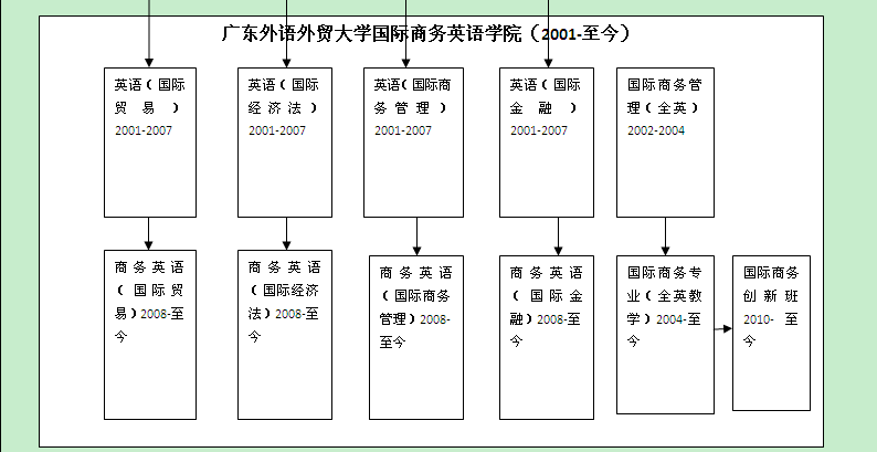成立之初设有英语(国际商务管理)、英语(国际贸易)、英语(国际金融)和英语(国际经济法)专业,2002年9月在英语(国际商务管理)专业的基础上开办了国际商务管理(全英)专业,经教育部批准,学院从2004年起开设国际商务(全英教学)本科专业;自2008年起开设商务英语本科专业,原英语专业各方向的名称分别改为商务英语(国际商务管理)、商务英语(国际贸易)、商务英语(国际金融)、商务英语(国际经济法),以更好地凸现伟德国际victor1946“英语 + 商务”的人才培养特色,突出学校培养“具有国际视野和创新意识,能直接参与国际竞争与合作的国际通用型人才”的人才培养目标,满足社会经济发展对高级商务英语人才的需求。